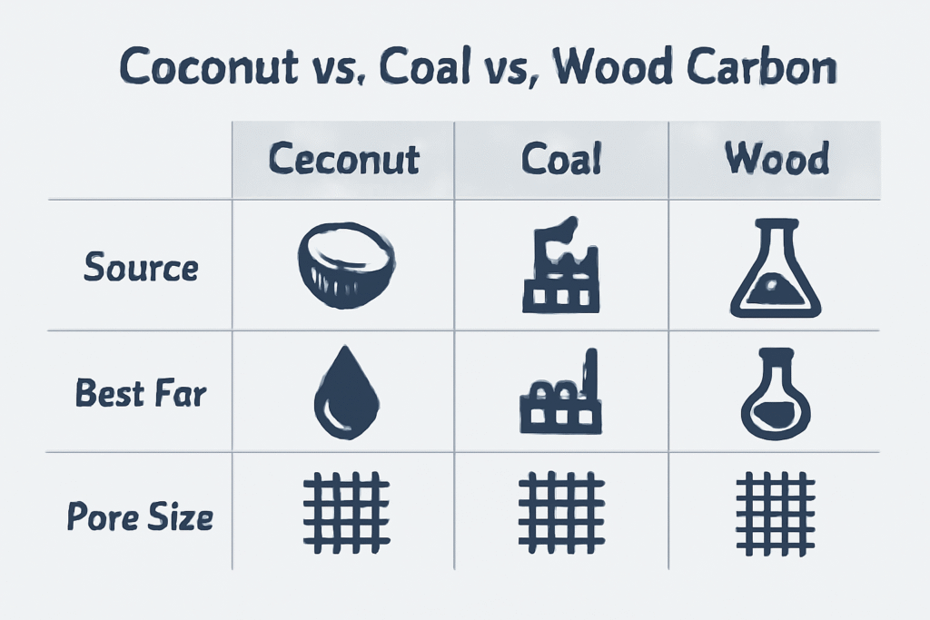 In this guide, we will break down the three primary sources of activated carbon, explain the science of pore sizes, and help you decide which material is right for your water or air filtration needs.